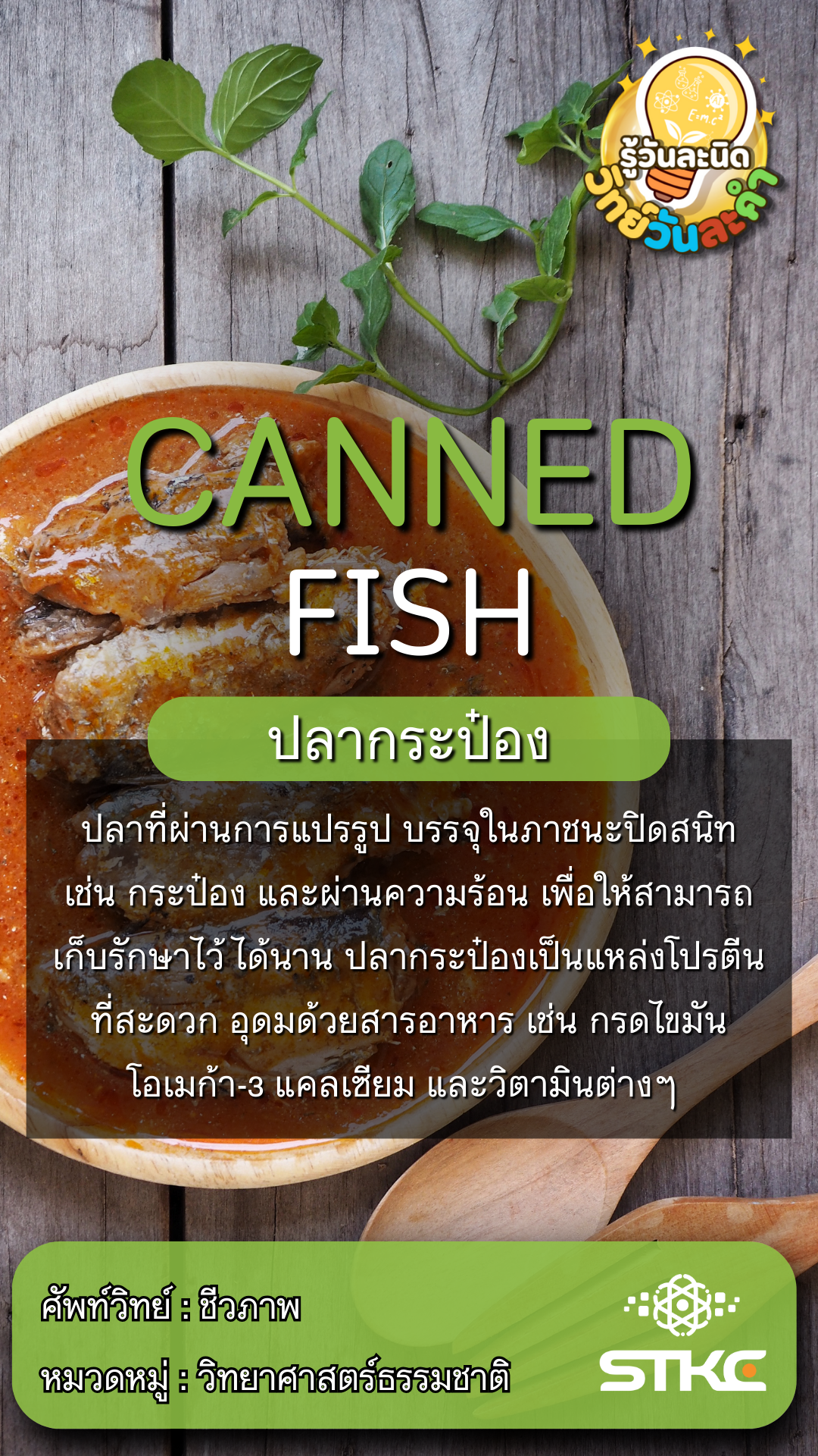 ปลาที่ผ่านการแปรรูป บรรจุในภาชนะปิดสนิท เช่น กระป๋อง และผ่านความร้อน เพื่อให้สามารถเก็บรักษาไว้ได้นาน ปลากระป๋องเป็นแหล่งโปรตีนที่สะดวก อุดมด้วยสารอาหาร เช่น กรดไขมัน โอเมก้า-3 แคลเซียม และวิตามินต่างๆ